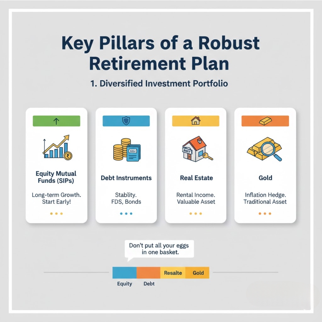 - Debt Instruments:For stability as you approach retirement (e.g., FDs, bonds).